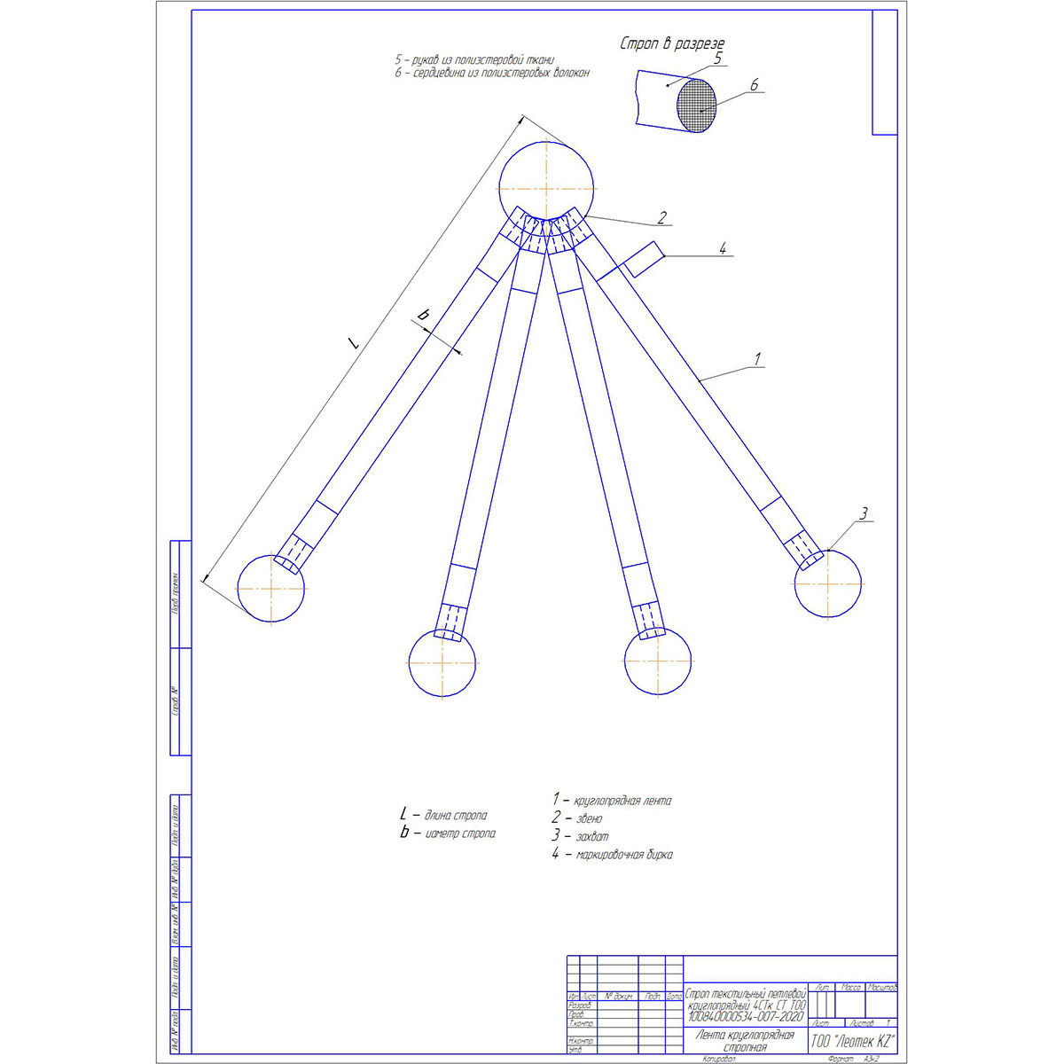 ТОО «Леотек.kz» изготавливает стропы с запасом прочности 1:6мм и 1:7мм, в соответствии с РД 24-СЗК-01-01, а также по стандарту организации, зарегистрированного в ЧС РК — СТ ТОО 100840000-002-2010